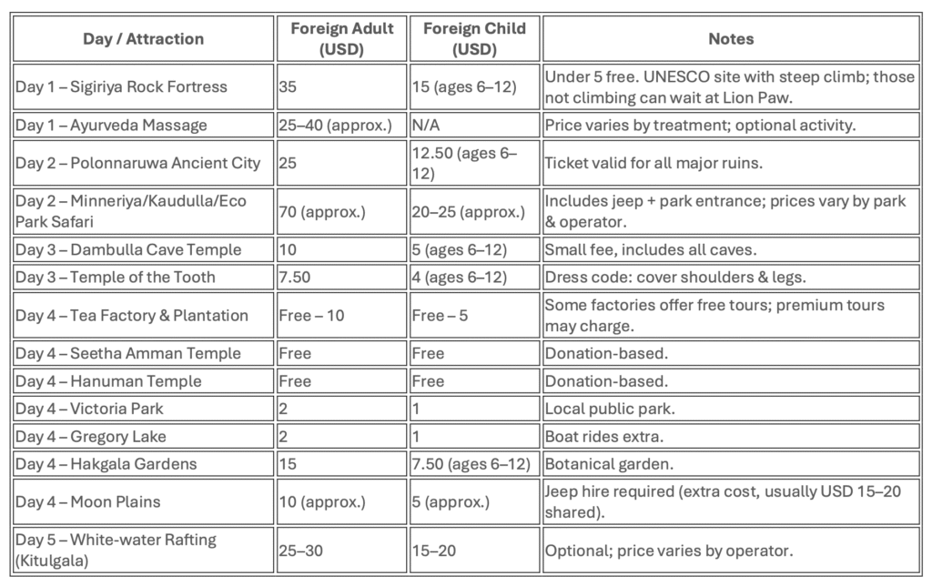 Discover the best of Sri Lanka’s Cultural Triangle and hill country with this 5-day tour package. Begin your adventure in Sigiriya, where you’ll climb the iconic Lion Rock Fortress, and explore the ancient city of Polonnaruwa with its well-preserved ruins. Experience a thrilling jeep safari in Minneriya National Park, home to majestic herds of wild elephants. Continue to Kandy, a UNESCO-listed city, where you’ll visit the sacred Temple of the Tooth Relic and the lush Royal Botanical Gardens. Conclude your journey in Nuwara Eliya, the picturesque hill town renowned for its tea plantations, cool climate, and serene landscapes. This tour offers a perfect blend of history, wildlife, and scenic beauty.